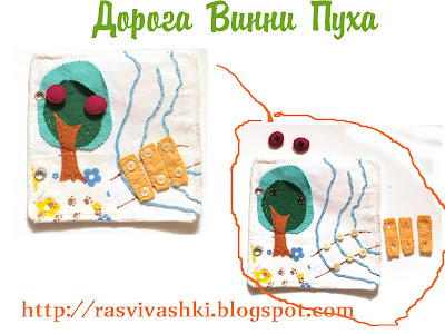 Я в подарок недавно пошила новую развивающую книжку"Винни пух". Заказ был следующий книжка с большим количеством застежек, возраст 2,5 года. Пол выяснить не удалось :)Соответственно нужна сюжетная книжка с застежками. А где много застежек-в домиках. А домиков много в Винни Пухе. Да и мультик отличный:) Деточке которой делала книажка понравилась вот их описание такой позитив!!Сижу улыбаюсь :)